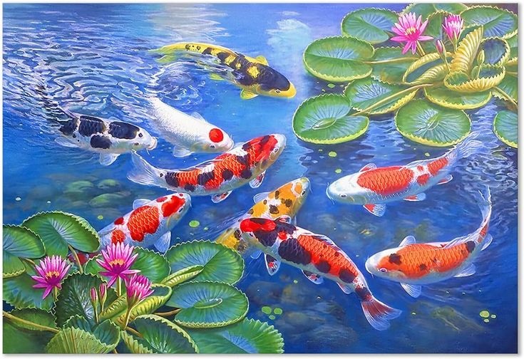tranh sơn dầu phong thủy cửu ngư quần hội - Vẽ tranh tường NU